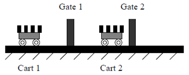 Important: The first photogate must be connected to channel 1 in the interface to activate the system after cart 1 passes it.