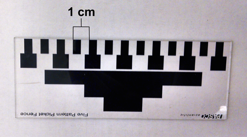 Make sure that the photogate light beam is level with the 1-cm-spaced bands.