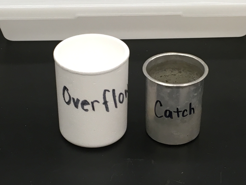 Measure the mass of the empty catch can. The catch can will be used to collect water displaced by the submerged object. Record the mass in the Inlab.