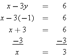 y and substitute the result into the other equation to obtain an expression containing only the single unknown variable