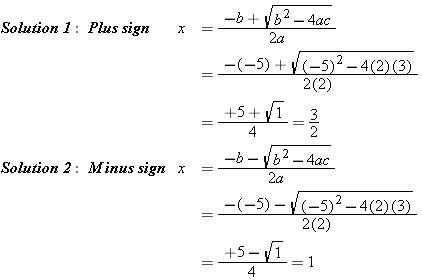 in the quadratic formula indicates that there are two solutions. For instance, if