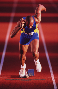 As this sprinter explodes out of the starting block, his velocity is changing, which means that he is accelerating. (© Jim Cummins/Taxi/Getty Images, Inc.)