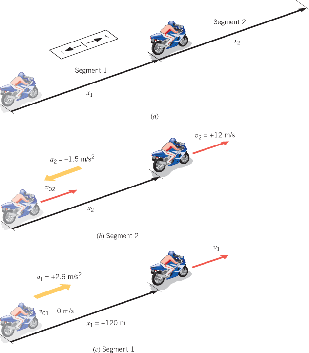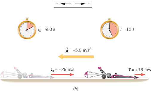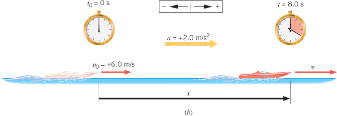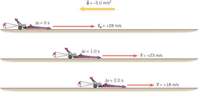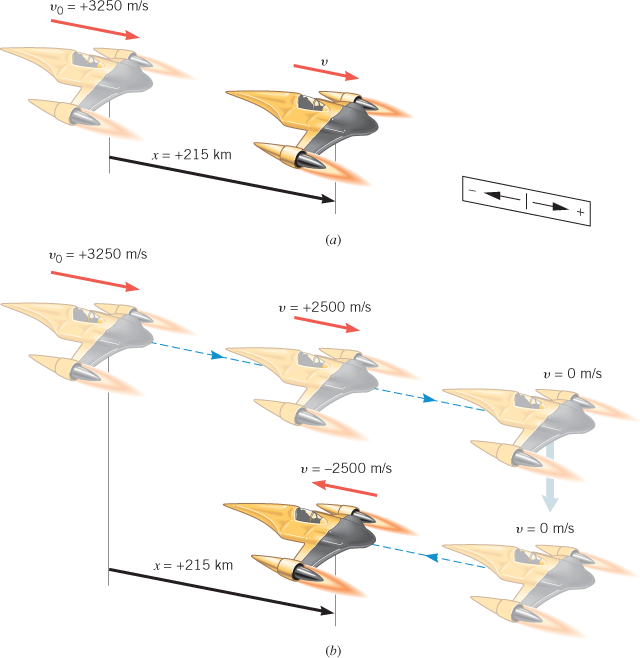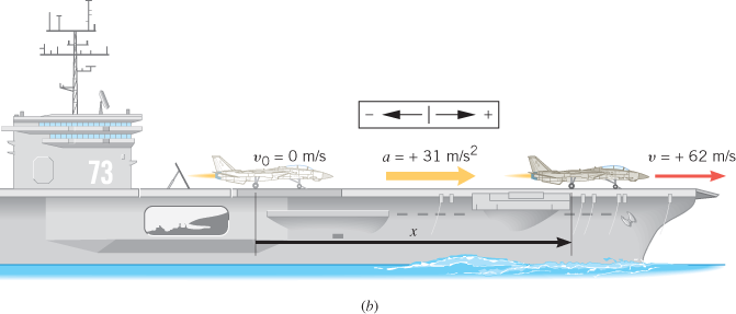 An acceleration of means that the velocity of the plane changes by during each second of the motion. The “” direction for and is to the right.