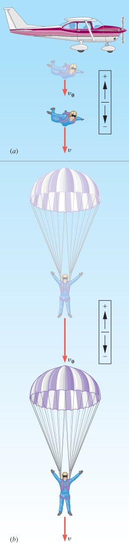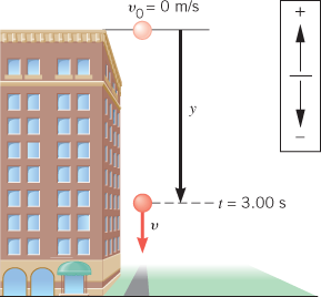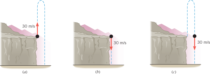 In preparation for this problem, review Conceptual Example 7. From the top of a cliff, a person uses a slingshot to fire a pebble straight downward, which is the negative direction. The initial speed of the pebble is .