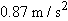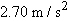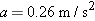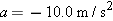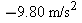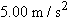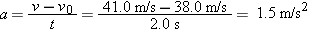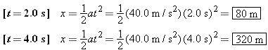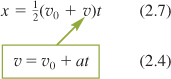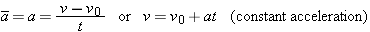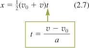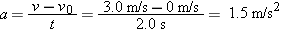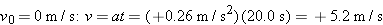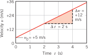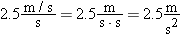 where we have used . An acceleration of is read as “2.5 meters per second per second” (or “2.5 meters per second squared”) and means that the velocity changes by during each second of the motion.