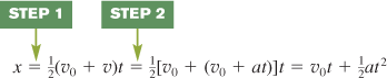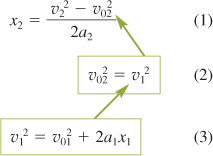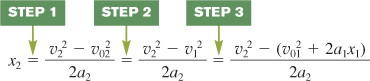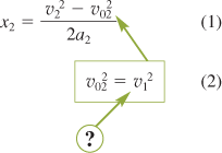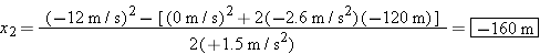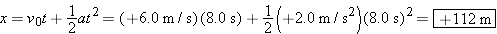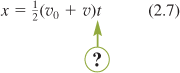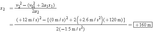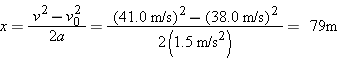 The time that elapses during the rest of the race is found by solving Equation 2.8 . Let represent the displacement for this part of the race. With the aid of Equation 1, this becomes . Then, since the car is at its maximum speed, the acceleration is , and the displacement is