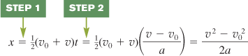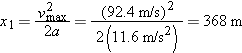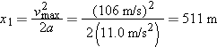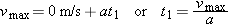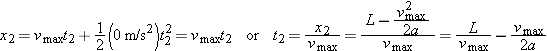 On the other hand, if a car reaches its maximum speed before crossing the finish line, the race divides into two intervals, each with a different constant acceleration. The displacement is found as given in Equation 1, but the time to reach the maximum speed is most easily found from Equation 2.4 , with and :
