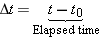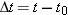 Suppose that the initial position of the car in Figure 2.1 is when the time is . A little later that car arrives at the final position at the time t. The difference between these times is the time required for the car to travel between the two positions. We denote this difference by the shorthand notation (read as “delta t”), where represents the final time t minus the initial time :