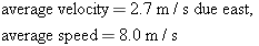 A straight track is in length. A runner begins at the starting line, runs due east for the full length of the track, turns around and runs halfway back. The time for this run is five minutes. What is the runner's average velocity, and what is his average speed?