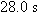 The leader of a bicycle race is traveling with a constant velocity of and is ahead of the second-place cyclist. The second-place cyclist has a velocity of and an acceleration of . How much time elapses before he catches the leader?