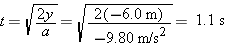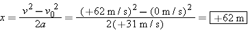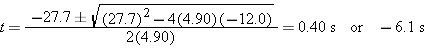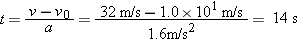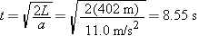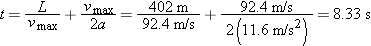 If , then the car crosses the finish line before reaching top speed, and the total time for its race is found from Equation 2.8 , with and :