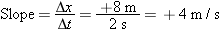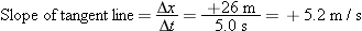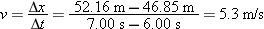Since the runners collide during the seventh second, the speed at the instant of collision can be found by taking the slope of the position-time graph for the seventh second. The speed of either runner in the interval from = 6.00 s to = 7.00 s is