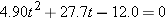 The displacement traveled by the pebble as a function of the time can be found from Equation 2.8. Using Equation 2.8, we have