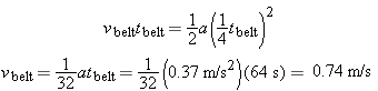 The speed with which the belt of the ramp is moving can be found by eliminating between Equations 1 and 2.