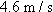 A speed ramp at an airport is basically a large conveyor belt on which you can stand and be moved along. The belt of one ramp moves at a constant speed such that a person who stands still on it leaves the ramp after getting on. Clifford is in a real hurry, however, and skips the speed ramp. Starting from rest with an acceleration of , he covers the same distance as the ramp does, but in one-fourth the time. What is the speed at which the belt of the ramp is moving?