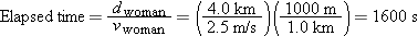 REASONING Since the woman runs for a known distance at a known constant speed, we can find the time it takes for her to reach the water from Equation 2.1. We can then use Equation 2.1 to determine the total distance traveled by the dog in this time.