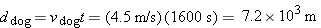 A woman and her dog are out for a morning run to the river, which is located away. The woman runs at in a straight line. The dog is unleashed and runs back and forth at between his owner and the river, until the woman reaches the river. What is the total distance run by the dog?