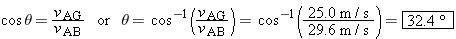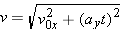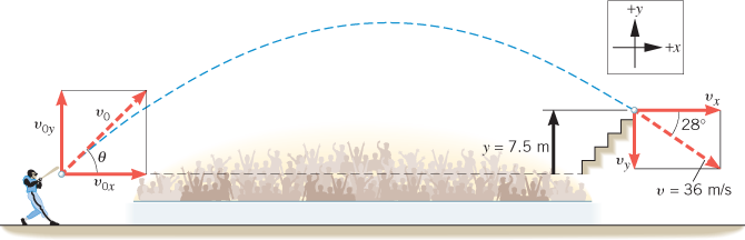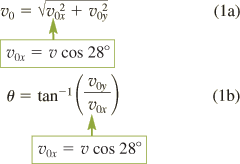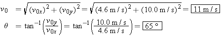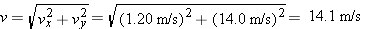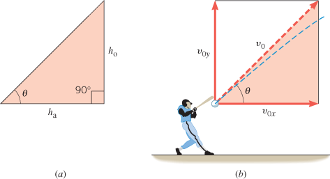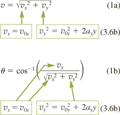 Figure 3.6 shows the final velocity vector, which has components and and a magnitude v. The final velocity is directed at an angle above the axis. The vector and its components form a right triangle, the hypotenuse being the magnitude of the velocity and the components being the other two sides. Thus, we can use the Pythagorean theorem to determine the magnitude v from values for the components and . We can also use trigonometry to determine the directional angle .