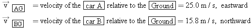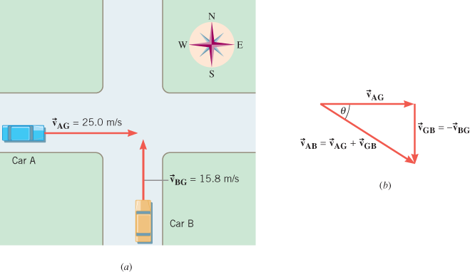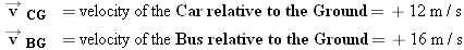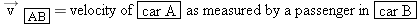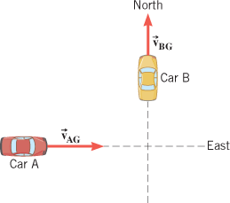 Taking east as the positive direction, the velocity of A relative to B is, according to Equation 3.7,