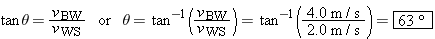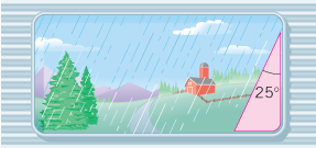 A person looking out the window of a stationary train notices that raindrops are falling vertically down at a speed of relative to the ground. When the train moves at a constant velocity, the raindrops make an angle of when they move past the window, as the drawing shows. How fast is the train moving?