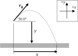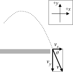 A golf ball rolls off a horizontal cliff with an initial speed of . The ball falls a vertical distance of 15.5 m into a lake below.