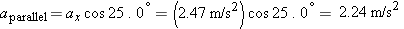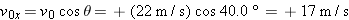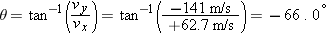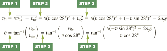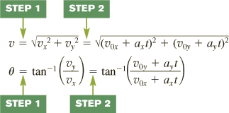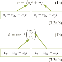 This example also deals with the spacecraft in Figure 3.5. As in Example 1, the x components of the craft's initial velocity and acceleration are and , respectively. The corresponding y components are and . At a time of , find the spacecraft's final velocity (magnitude and direction).