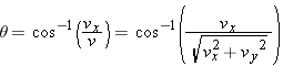 The velocity vector has components and and a magnitude v. The magnitude gives the speed of the spacecraft, and the angle gives the direction of travel relative to the positive x direction.