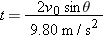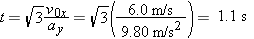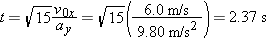 A golfer, standing on a fairway, hits a shot to a green that is elevated 5.50 m above the point where she is standing. If the ball leaves her club with a velocity of at an angle of above the ground, find the time that the ball is in the air before it hits the green.