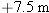 A ball is thrown upward at a speed at an angle of above the horizontal. It reaches a maximum height of 7.5 m. How high would this ball go if it were thrown straight upward at speed ?