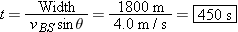 At some airports there are speed ramps to help passengers get from one place to another. A speed ramp is a moving conveyor belt on which you can either stand or walk. Suppose a speed ramp has a length of 105 m and is moving at a speed of relative to the ground. In addition, suppose you can cover this distance in 75 s when walking on the ground. If you walk at the same rate with respect to the speed ramp that you walk on the ground, how long does it take for you to travel the 105 m using the speed ramp?