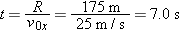 After 7.0 s, the spacecraft is 740 m to the right and 390 m above the origin.