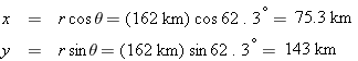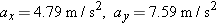 In Figure 3.5, the directions to the right and upward are the positive directions. In the x direction, the spacecraft has an initial velocity component of and an acceleration component of . In the y direction, the analogous quantities are and . At a time of , find the x and y components of the spacecraft's displacement.