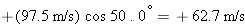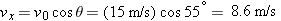 A dolphin leaps out of the water at an angle of above the horizontal. The horizontal component of the dolphin's velocity is . Find the magnitude of the vertical component of the velocity.