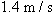 Two boats are heading away from shore. Boat 1 heads due north at a speed of relative to the shore. Relative to boat 1, boat 2 is moving north of east at a speed of . A passenger on boat 2 walks due east across the deck at a speed of relative to boat 2. What is the speed of the passenger relative to the shore?