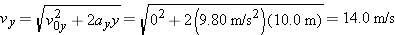 SOLUTION For convenience, we will take downward as the positive direction. After the diver has fallen 10.0 m, the component of his velocity is, from Equation 3.6b,