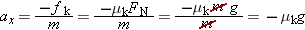 in the following manner. The kinetic frictional force is the only horizontal force that acts on the skater, and, since it is a resistive force, it acts opposite to the direction of the motion. Thus, the net force in the direction is , where is the magnitude of the kinetic frictional force.Therefore, the acceleration of the skater is