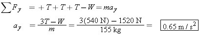 and is the magnitude of the tension in the rope. If the masses of the rope and each pulley are negligible and if the pulleys are friction-free, the tension is transmitted undiminished along the rope. Then, a 540-N tension force