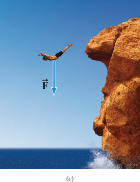 action-at-a-distance forces. One example of such a noncontact force occurs when a diver is pulled toward the earth because of the force of gravity. The earth exerts this force even when it is not in direct contact with the diver. In Figure