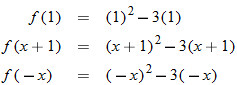 of the argument is equal to the argument squared minus 3 times the argument.” Any expression can be substituted for the argument: