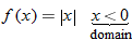 . Every negative real number in the domain is mapped to a positive real number in the range through the absolute value function.