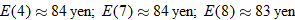 Find the increase or decrease in the number of Japanese yen to the U.S. dollar exchange rate, to the nearest yen, from (a) Week 2 to Week 3 and (b) Week 6 to Week 7.