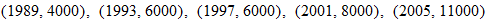 Write five ordered pairs whose domain is the set of even years from 2000 to 2008 and whose range is the set of corresponding average federal funds rate for the month of January.