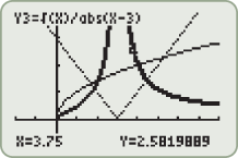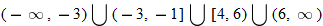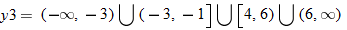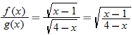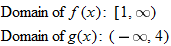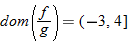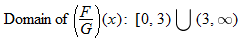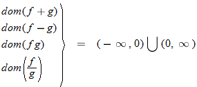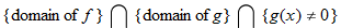 The real numbers that are in both the domain for  and the domain for  are represented by the intersection  . Also, the denominator of the quotient function is equal to zero when  , so we must eliminate this value from the domain.