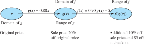 Recall the example at the beginning of this chapter regarding the clothes that are on sale. Often, real-world applications are modeled with composite functions. In the clothes example,