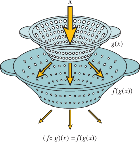 composition of functions, when the output of one function is the input of another function. It is commonly referred to as a function of a function.