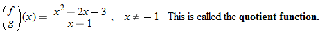 The quotient function has the additional constraint that the denominator cannot be zero. This implies that  , so the domain of the quotient function is  .