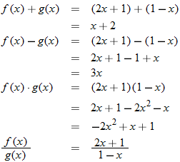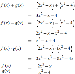 Adding, Subtracting, Multiplying, and Dividing Functions