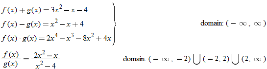 . The domain of both of these functions is the set of all real numbers. Therefore, we can add, subtract, or multiply these functions for any real number