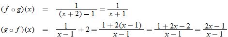 In  , the output of  becomes the input for  . Since the domain of  is the set of all real numbers except 2, we eliminate any values of  in the domain of  that correspond to  .