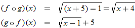 For the functions  and  given in Example 4, determine the composite function  and state its domain.